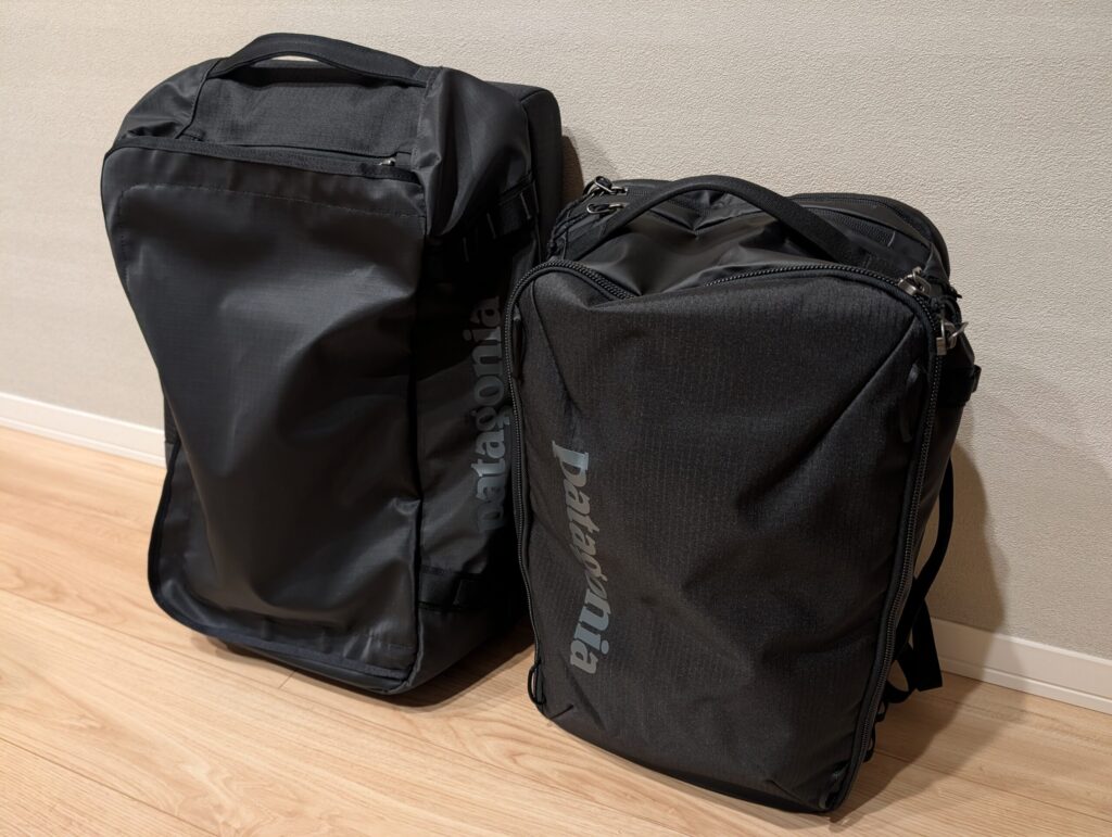 ここで重要になるのが、「重い荷物は転がし、大切な荷物は背負う」という使い分けです。 私はPCやカメラなどの精密機器を、同じパタゴニアの「ミニMLC 30L」に収納しています。