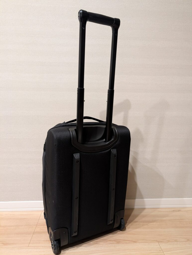 背負うタイプの「ダッフル」とは違い、重い荷物も転がして運べるから移動が劇的にラクになるわ。